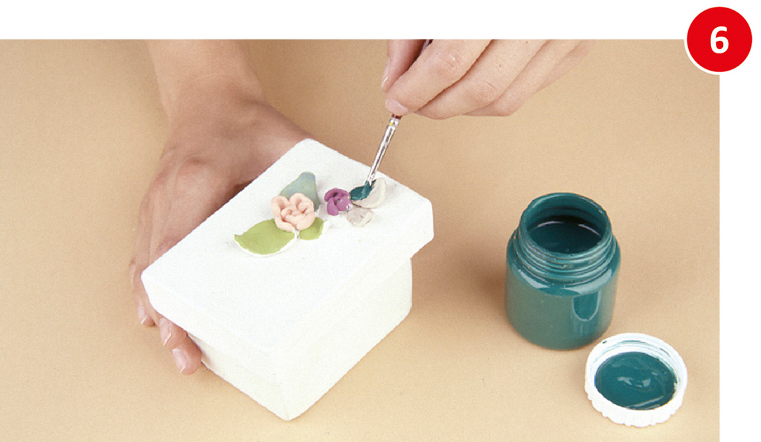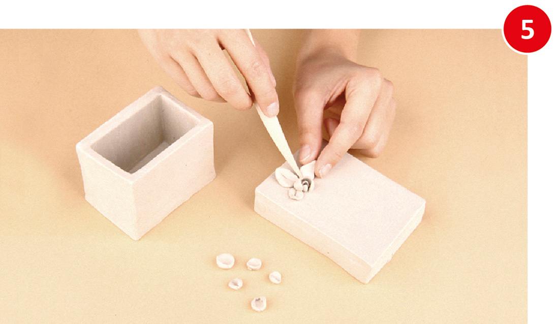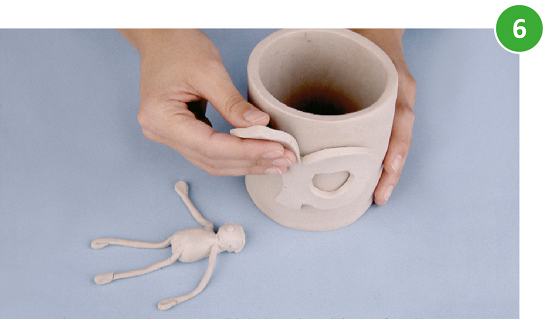 Pots decorar l’exterior amb petites peces modelades. Humiteja bé les zones de contacte abans d’unir-les. Un cop seca la peça, aplica pintura acrílica o vernís.