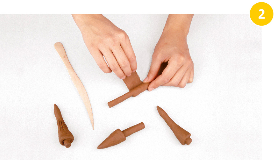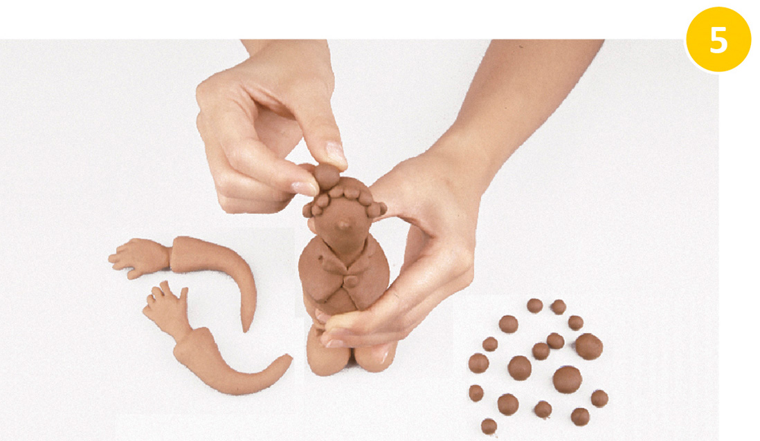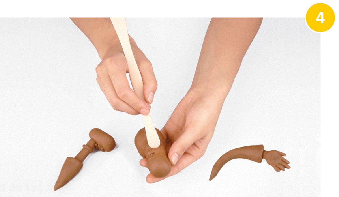 Fes dues boles (una pel cos i una altra pel cap) i uneix-les pressionant. Reforça la unió amb un xurro al voltant i allisa’l.