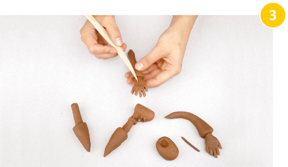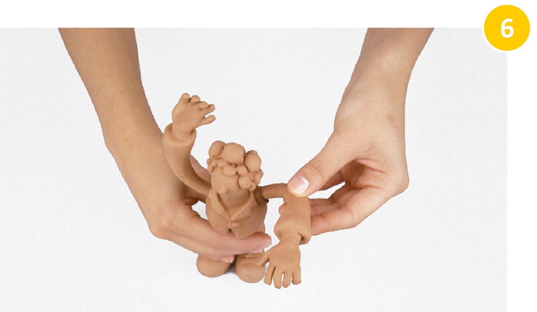 Modela les mans i els peus per separat i uneix-los amb cura als braços i cames.
