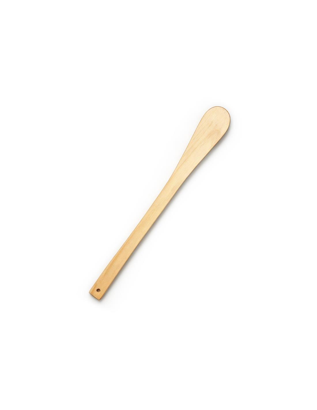 Fabricada en fusta natural, ofereix un tacte agradable i un excel·lent control durant l’ús, permetent treballar la superfície sense marcar ni danyar la pasta. La seva forma allargada i lleugerament flexible la converteix en una aliada perfecta tant per donar forma com per refinar detalls i textures.
