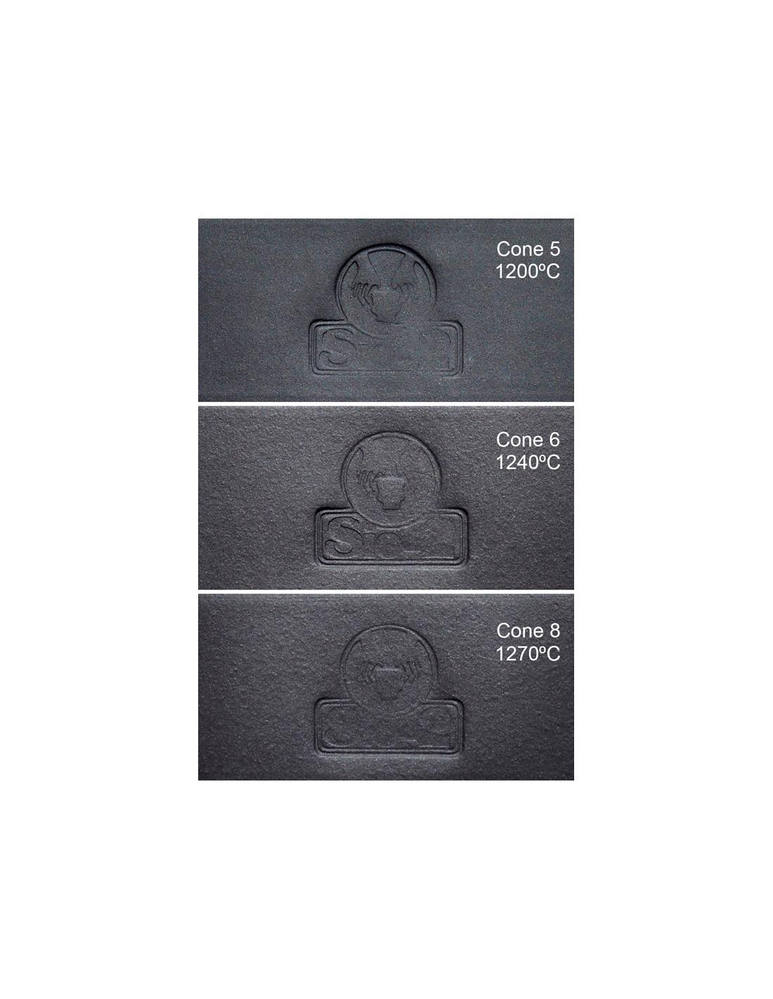 BLACK ICE és una porcellana negra que destaca pel seu bell color negre grafit. Presenta una elevada plasticitat, el que la fa idònia per treballar al torn i per modelar. La seva fórmula és molt estable i permet un rang de cocció segur entre 1200 i 1240ºC (atmosfera oxidant). Apte per a vaixella (food-safe), segons ISO 6486. Disponible en pasta plàstica extrusionada. Es presenta en format cilíndric de 5 kg en caixa de cartró.