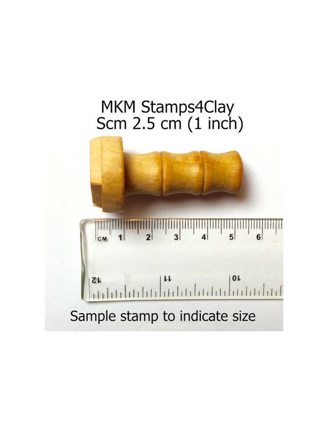 Sellos de madera Medium Round Stamps SCM de MKM Pottery Tools. Fabricados con alta calidad y acabados con aceite para garantizar su durabilidad. Tallados en bisel para facilitar la liberación de la arcilla. Limpieza sencilla con un cepillo suave y agua tibia. Aptos para cualquier tipo de arcilla.