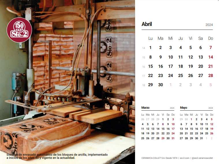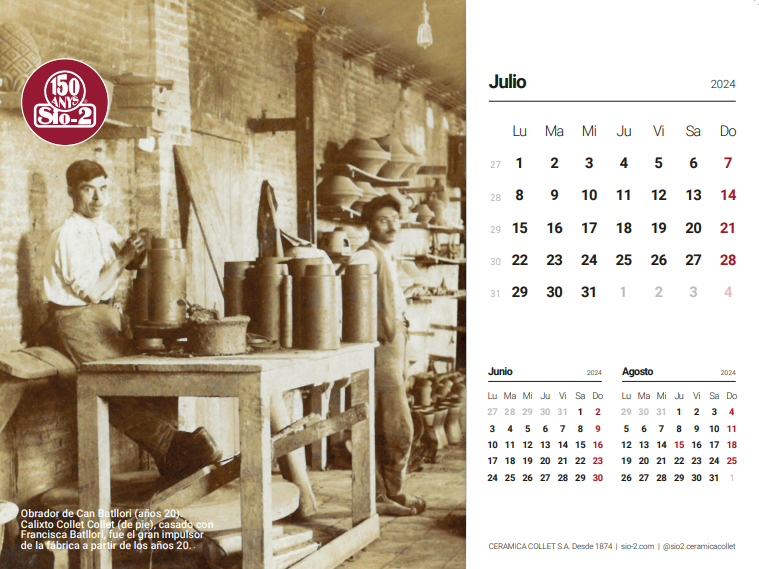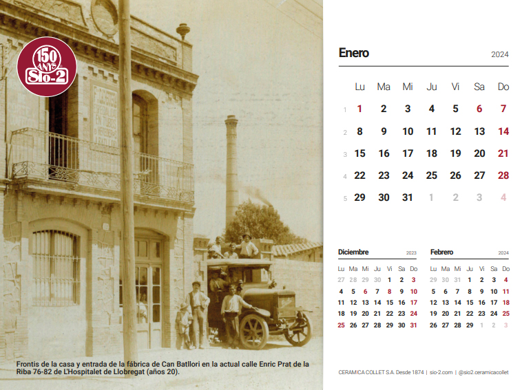 Nos complace mostraros el Calendario SIO-2® 2024, dedicado al 150 Aniversario de Cerámica Collet S.A. (1874-2024).