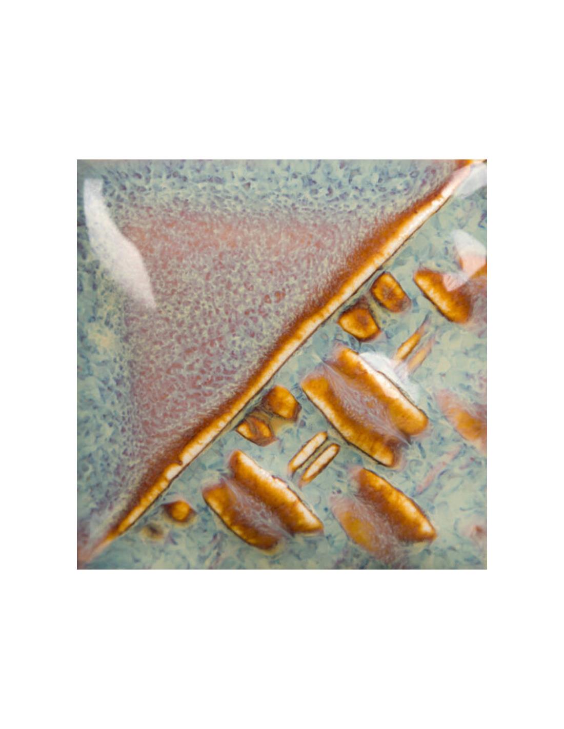 Está formulado para cocciones de alta temperatura, trabajando en un rango aproximado entre 1180 °C (cono 5) y 1300 °C (cono 10). En torno a 1180–1240 °C (conos 5–6) desarrolla tonos más suaves y controlados, con un brillo limpio y uniforme. A temperaturas más altas, entre 1260 y 1300 °C (conos 9–10), el esmalte gana profundidad cromática, mayor movimiento visual y aparecen con más fuerza los efectos de rotura en relieves y texturas.