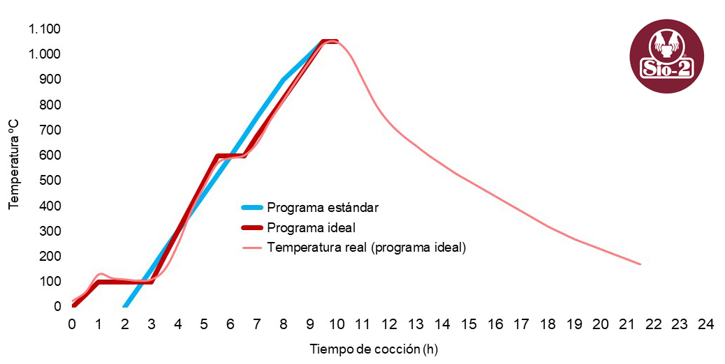 La courbe de cuisson des pâtes céramiques est l'un des sujets qui suscite le plus de questions pour notre service technique. Au-delà de la température maximale de cuisson (basse, moyenne ou haute), une courbe de cuisson adéquate est indispensable pour obtenir un bon résultat, minimisant les risques de casse et de défauts des pièces lors de la cuisson. Ensuite, nous expliquons les principales phases ou intervalles de la cuisson conventionnelle et les mesures que vous devez prendre dans chacune d'elles.