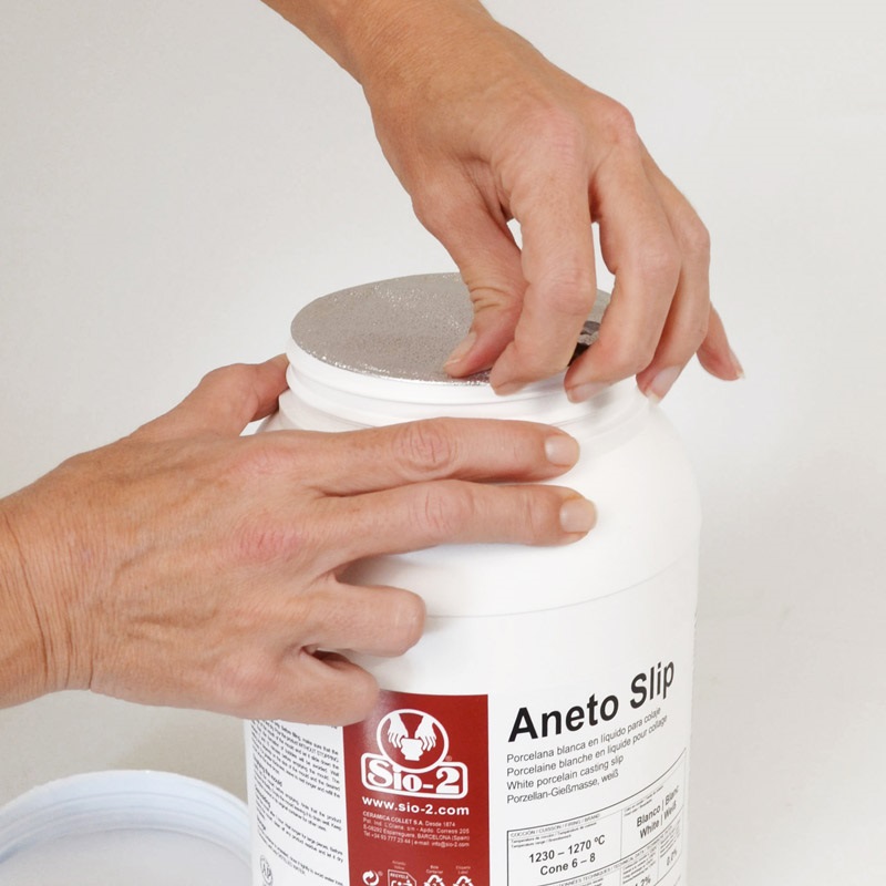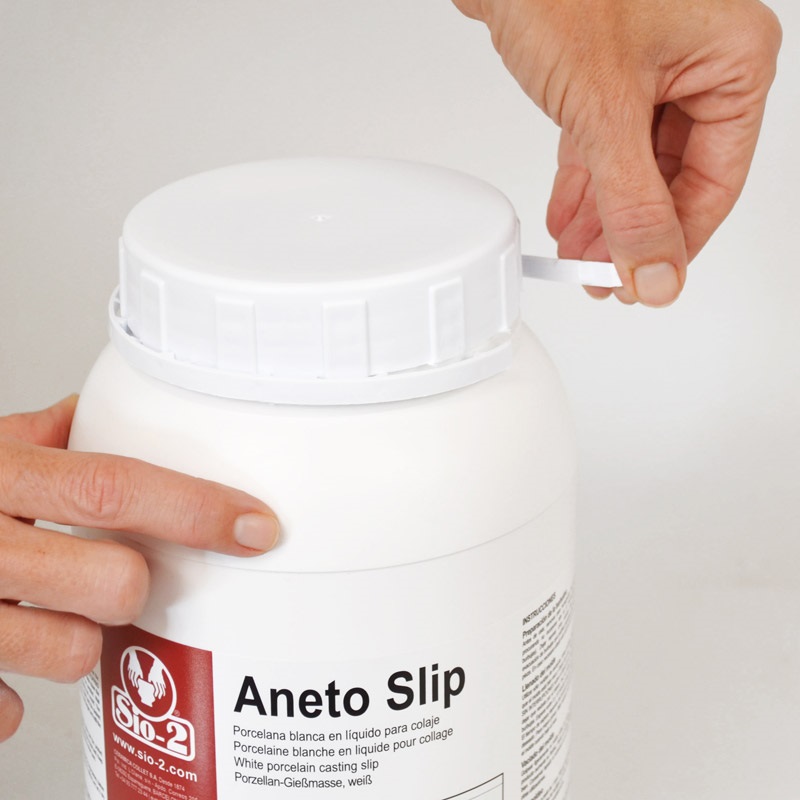 ANETO SLIP est disponible en bidon de 3,5 litres (6 kg), conçu pour offrir un stockage et une manipulation faciles. Son bouchon à vis avec sceau de sécurité et opercule thermoscellé garantit que la barbotine reste en parfait état de la première à la dernière goutte.
