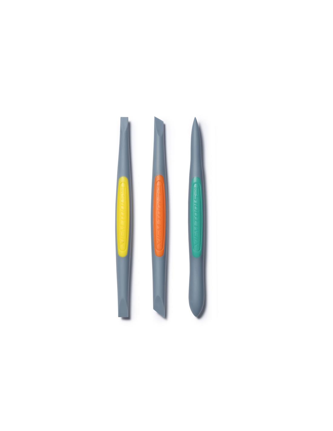 Fabricadas con silicona firme de alta resistencia, son duraderas y resistentes al agrietamiento y al desgaste. Su diseño ergonómico, combinado con materiales de alta calidad, garantiza máxima eficiencia y precisión en cada uso. Cada herramienta mide 17 cm de largo y 1,5 cm de diámetro en su parte más gruesa, proporcionando un manejo cómodo y controlado.