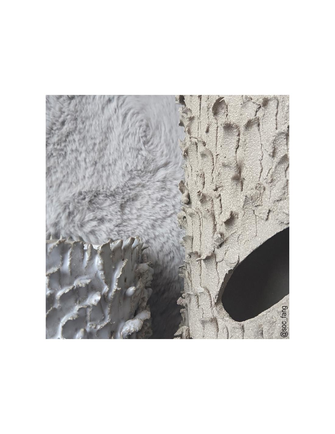 Grès chamotté gris avec 40% de chamotte fine 0-0.5 mm. Conçu pour la céramique artistique et décorative, est idéal pour la sculpture et des pièces d’extérieur (pots de jardin, carrelage, etc.). La forte teneur en chamotte donne du caractère à la pièce céramique et lui confère un excellent comportement au séchage et à la cuisson. En fonction de la température de cuisson, développe une belle gamme de couleur gris tendance, allant de la tonalité ciment au gris foncé. Disponible en pâte plastique.