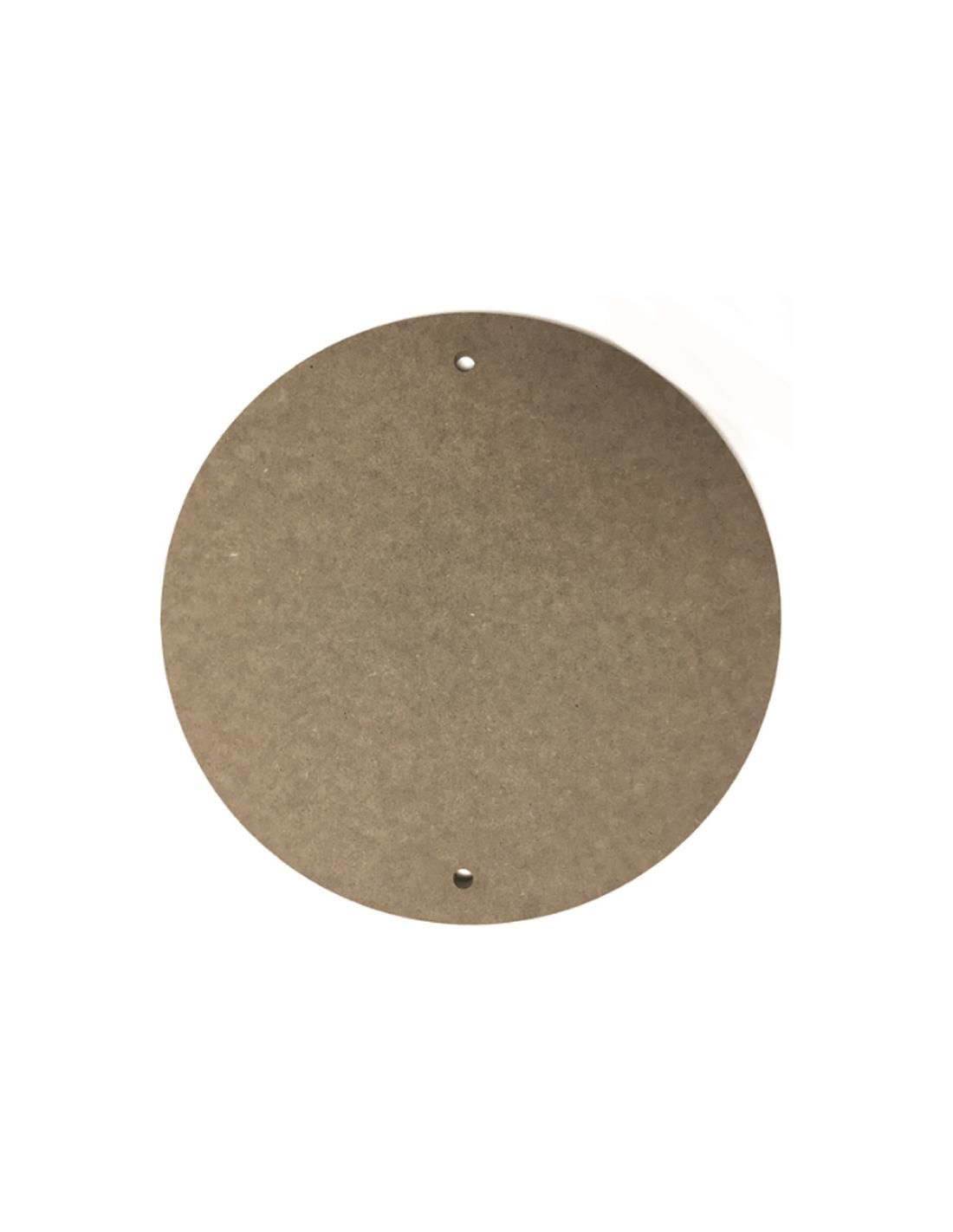 La base, fabricada en DM Hidrófugo, presenta dos orificios para acomodar sobre un plato de torno previamente acondicionado con pins de sujeción. La distancia entre orificios es de 25,5 cm aproximadamente.