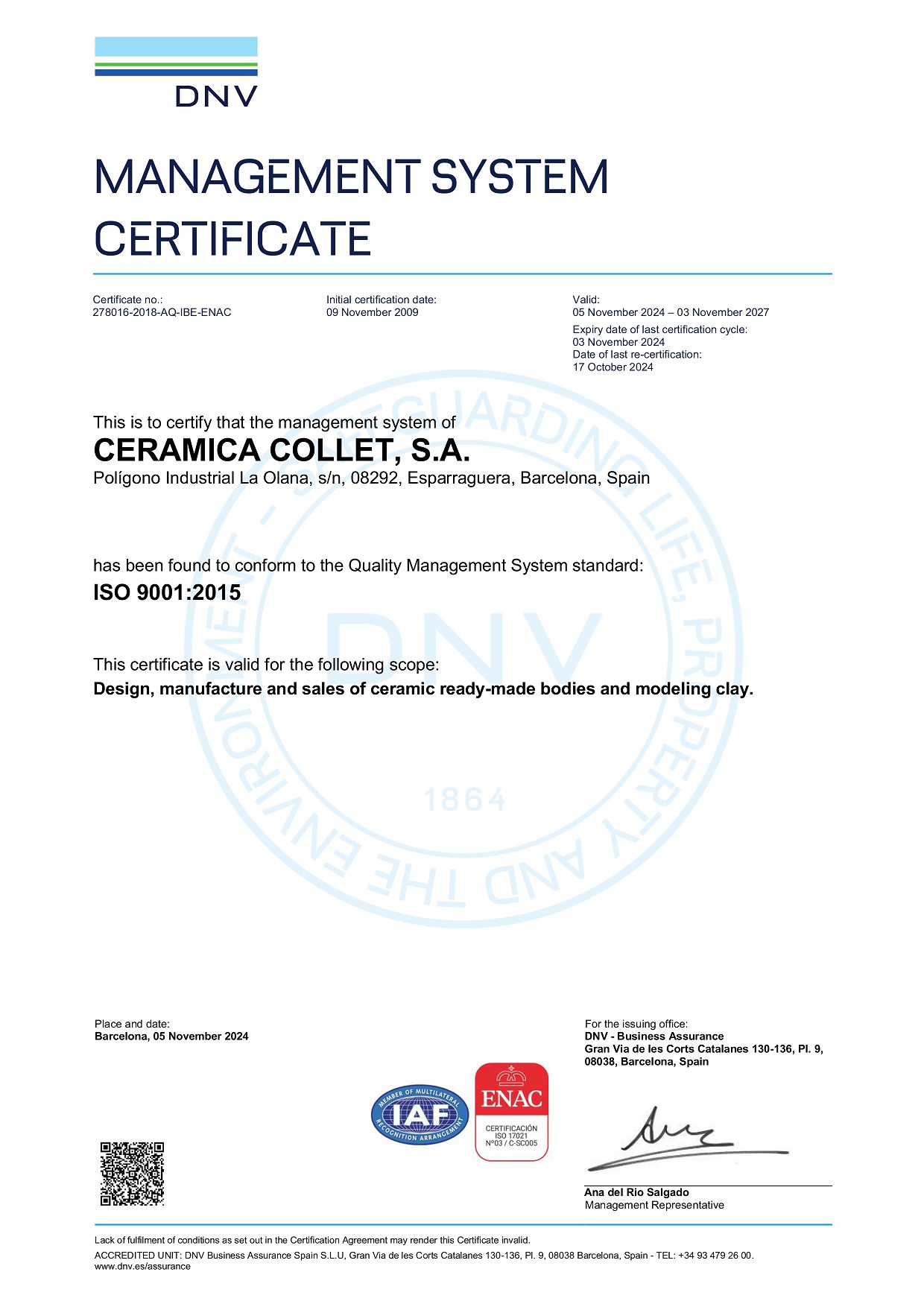 At Ceramica Collet S.A., we are committed to delivering products and services in the sectors of artistic ceramics, pottery, ceramic industry, crafts, fine arts and education, fully meeting our customers’ needs while ensuring sustainability, profitability and continuous improvement across our processes.