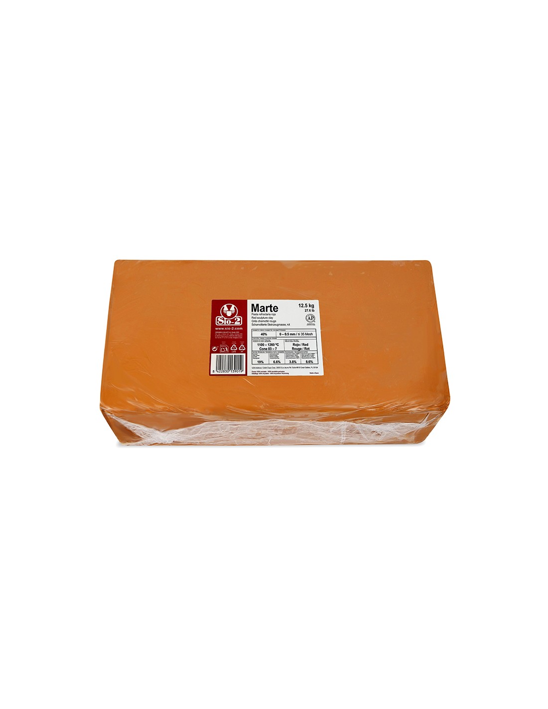 Red sculpture clay with 40% fine grog 0-0.5 mm (up to 35 Mesh). Designed for artistic ceramics, it is ideal for sculpture and decorative murals. The high content of grog confers a beautiful textured surface and an excellent behaviour during drying and firing. Depending on the firing temperature, it develops a beautiful range of red tones that intensify with temperature and provide an ideal means of artistic expression. Available in extruded body (moist form).